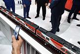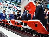 Рабочая поездка председателя правительства России Михаила Мишустина в Екатеринбург. Международная промышленная выставка "Иннопром-2023" (INNOPROM) в Международном выставочном центре (МВЦ) "Екатеринбург-Экспо". Жанровая фотография. Посетители у стенда компании "Транспортные системы" (Производство городского электрического транспорта).