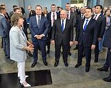 Рабочая поездка председателя правительства России Михаила Мишустина в Екатеринбург. Международная промышленная выставка "Иннопром-2023" (INNOPROM) в Международном выставочном центре (МВЦ) "Екатеринбург-Экспо". Председатель правительства России Михаил Мишустин (в центре) и заместитель председателя Правительства России - министр промышленности и торговли России Денис Мантуров (третий справа) во время осмотра выставки.
