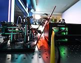 Форум будущих технологий в Центре международной торговли (ЦМТ). Слева направо: генеральный директор Российского квантового центра Руслан Юнусов, президент России Владимир Путин и генеральный директор - председатель правления ОАО "РЖД" Олег Белозеров во время осмотра выставки передовых разработок в области квантовых технологий госкорпорации "Росатом" и ОАО "РЖД".