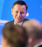 Форум будущих технологий в Центре международной торговли (ЦМТ). Генеральный директор - председатель правления ОАО "РЖД" Олег Белозеров во время осмотра выставки передовых разработок в области квантовых технологий госкорпорации "Росатом" и ОАО "РЖД".