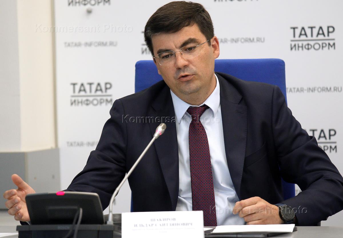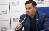Пресс-конференция о проведении в Казани матча за Суперкубок России по футболу в 2023 году. Заместитель руководителя Исполнительного комитета города Казани Ильдар Шакиров во время пресс-конференции.