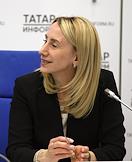 Пресс-конференция о проведении в Казани матча за Суперкубок России по футболу в 2023 году. Директор департамента организации и проведения соревнований Российского футбольного союза Ирина Посиренина во время пресс-конференции.