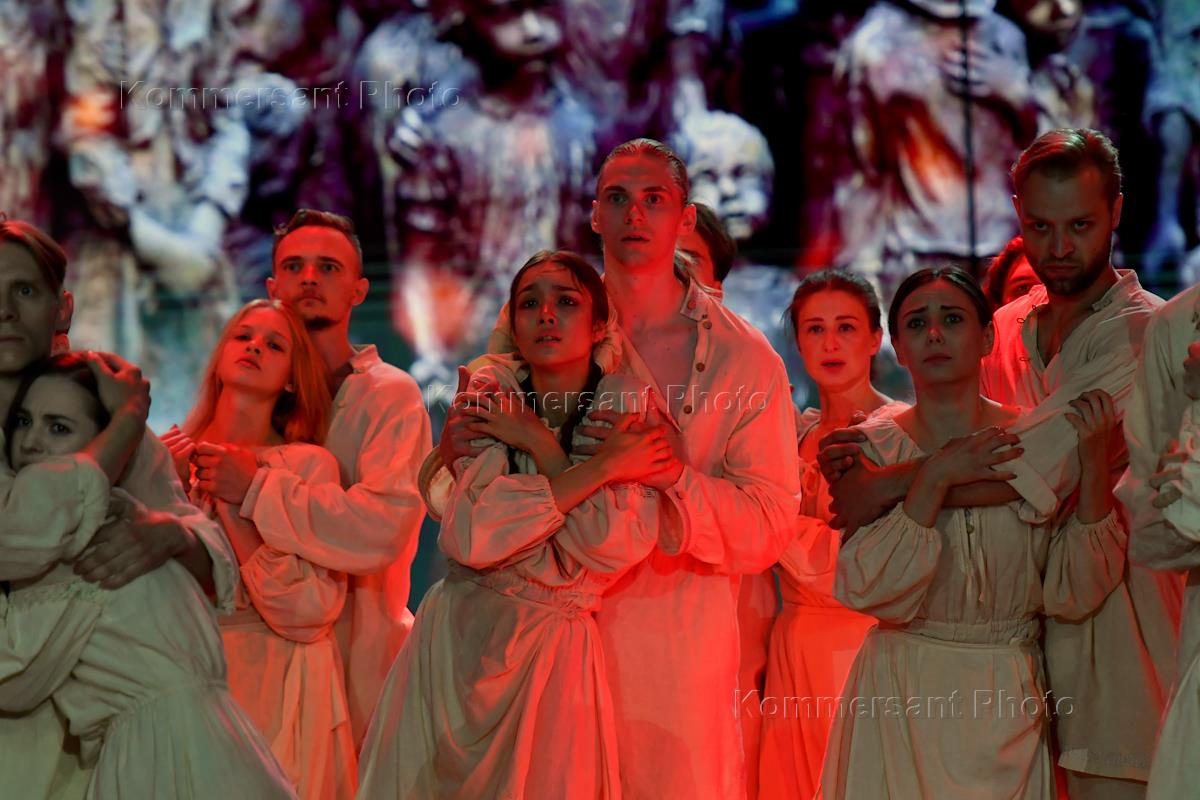 Церемония открытия XXXII Международного фестиваля искусств "Славянский базар в Витебске" на сцене Летнего амфитеатра. Певец Владимир Пресняков (в центре) во время выступления на церемонии.