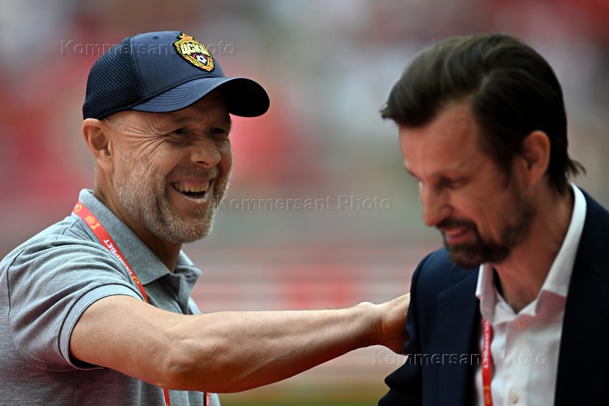 OLIMPBET Суперкубок России. Матч между командами "Зенит" (Санкт-Петербург) и ЦСКА (Москва) на стадионе "Ак Барс Арена". Главный тренер команды "Зенит" Сергей Семак (справа) и главный тренер команды ЦСКА Владимир Федотов (слева) перед началом матча.