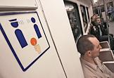 Пассажиры в вагоне поезда метро на новом участке от станции "Деловой центр" до станции "Международная".