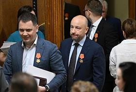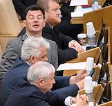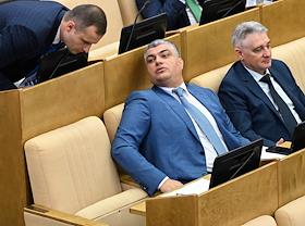 Пленарное заседание Государственной думы (ГД) России. Справа налево: член комитета ГД России по экономической политике Виктор Казаков, член комитета ГД России по экономической политике Виктор Кидяев и член комитета ГД России по транспорту и развитию транспортной инфраструктуры Роман Романенко во время заседания.