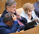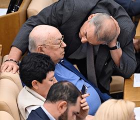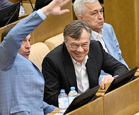 Пленарное заседание Государственной думы (ГД) России. Заместитель председателя Комитета ГД России по бюджету и налогам Каплан Панеш (в центре) во время заседания.
