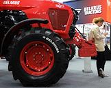 Международная промышленная выставка "Иннопром-2023" (INNOPROM) в Международном выставочном центре (МВЦ) "Екатеринбург-Экспо". Стенд белорусской компании "МАЗ" (Минский автомобильный завод). Модель Belarus Tractors (Белорусские трактора") на выставке.