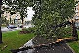 Последствия ливня в Москве. Жанровая фотография. Упавшее на тротуар дерево.