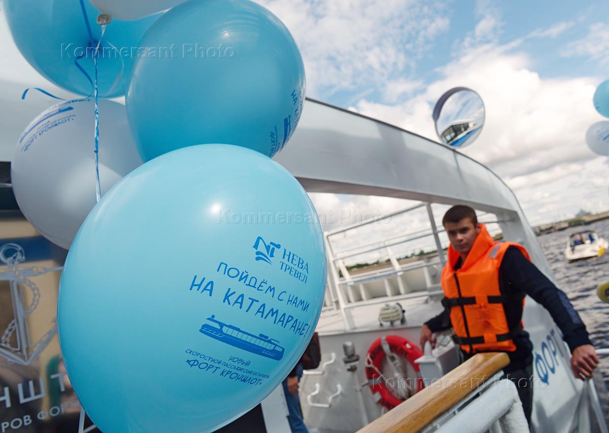 Старт навигации скоростного пассажирского катамарана по маршруту "Петербург - Кронштадт". Скоростной катамаран "Форт Кроншлот".
