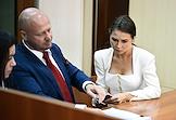 Рассмотрение ходатайства следствия об изменении меры пресечения с запрета определенных действий на домашний арест в отношении фитнес-блогера Валерии Чекалиной ("Лерчек") по делу о неуплате налогов на более чем 311 миллионов рублей и легализации денежных средств в Пресненском районном суде. Блогер Валерия Чекалина (справа) во время заседания суда.
