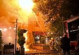 Пожар в центре города, на пересечении улиц Кочиняна и Бузанда. Пожарные во время тушения.