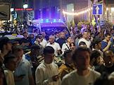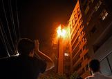Пожар в центре города, на пересечении улиц Кочиняна и Бузанда. Люди наблюдают за пожаром на улице.