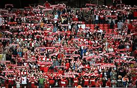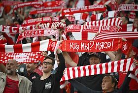 Российская Премьер-Лига (РПЛ). МИР - Чемпионат России по футболу 2023/2024. Первый тур. Матч между командами "Спартак" (Москва) - "Оренбург" (Оренбург) на стадионе "Открытие Банк Арена". Болельщики команды "Спартак" на трибуне во время матча.
