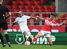 Российская Премьер-Лига (РПЛ). МИР - Чемпионат России по футболу 2023/2024. Первый тур. Матч между командами "Спартак" (Москва) - "Оренбург" (Оренбург) на стадионе "Открытие Банк Арена". Жанровая фотография.
