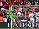 Российская Премьер-Лига (РПЛ). МИР - Чемпионат России по футболу 2023/2024. Первый тур. Матч между командами "Спартак" (Москва) - "Оренбург" (Оренбург) на стадионе "Открытие Банк Арена". Вратарь команды "Спартак" Александр Максименко (слева) и игрок команды "Оренбург" Ренато Гойкович (справа) во время матча.