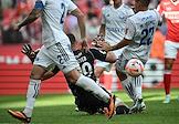 Российская Премьер-Лига (РПЛ). МИР - Чемпионат России по футболу 2023/2024. Первый тур. Матч между командами "Спартак" (Москва) - "Оренбург" (Оренбург) на стадионе "Открытие Банк Арена". Игроки команды "Оренбург" Ренато Гойкович (слева), Николай Сысуев (в центре) и игрок команды "Спартак" Павел Мелёшин (справа) во время матча.