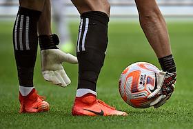 Российская Премьер-Лига (РПЛ). МИР - Чемпионат России по футболу 2023/2024. Первый тур. Матч между командами "Спартак" (Москва) - "Оренбург" (Оренбург) на стадионе "Открытие Банк Арена". Вратарь команды "Оренбург" Николай Сысуев во время матча.