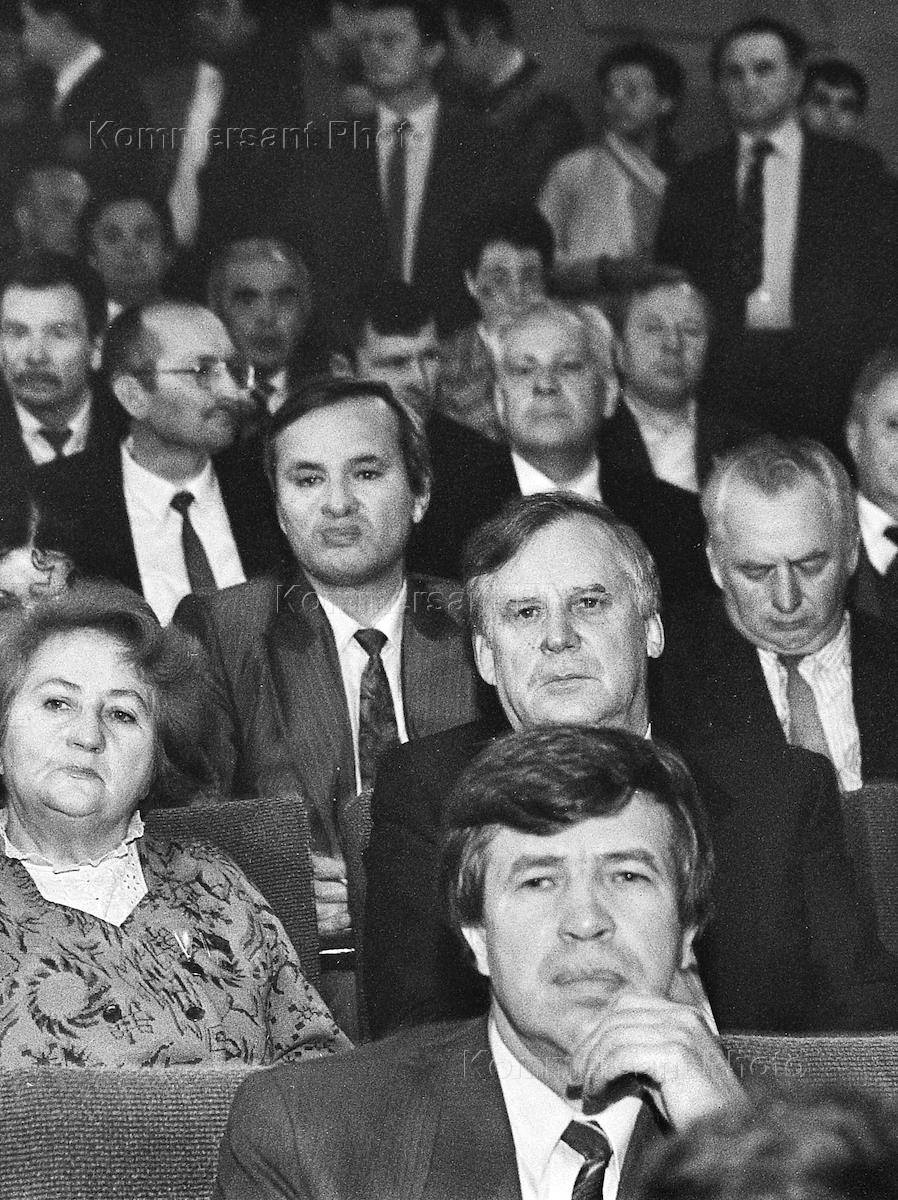 Конгресс народов СССР в здании МХАТ имени Горького. Член ЦК КПРФ Егор Лигачев (справа) во время заседания конгресса.