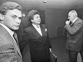 Конгресс народов СССР в здании МХАТ имени Горького. Актер Игорь Горбачев (в центре) и член ЦК КПРФ Егор Лигачев (второй справа) перед началом заседания конгресса.