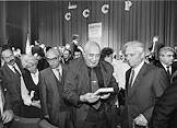 Конгресс народов СССР в здании МХАТ имени Горького. Лидер легально незарегистрированной Всесоюзной коммунистической партии большевиков (ВКПБ) Нина Андреева (в центре) перед началом заседания конгресса.