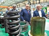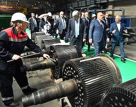 Working trip of Russian Prime Minister Mikhail Mishustin to the Far Eastern Federal District. From left to right: CEO of Transmashholding JSC Kirill Lipa, CEO of Zheldorremmash JSC Alexander Mavrin, Prime Minister of Russia Mikhail Mishustin and manager of the Ulan-Ude Locomotive Car Repair Plant (UULCRP) Sergei Zaborskikh during a visit to the UULCRP.