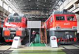 Ulan-Ude Locomotive Car Repair Plant is the largest repair plant in the structure of Zheldorremmash JSC. Genre photography. Electric locomotive 3ES5K and EP1 during repairs in one of the plant's workshops.