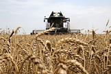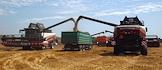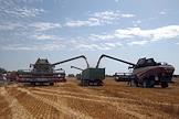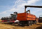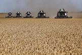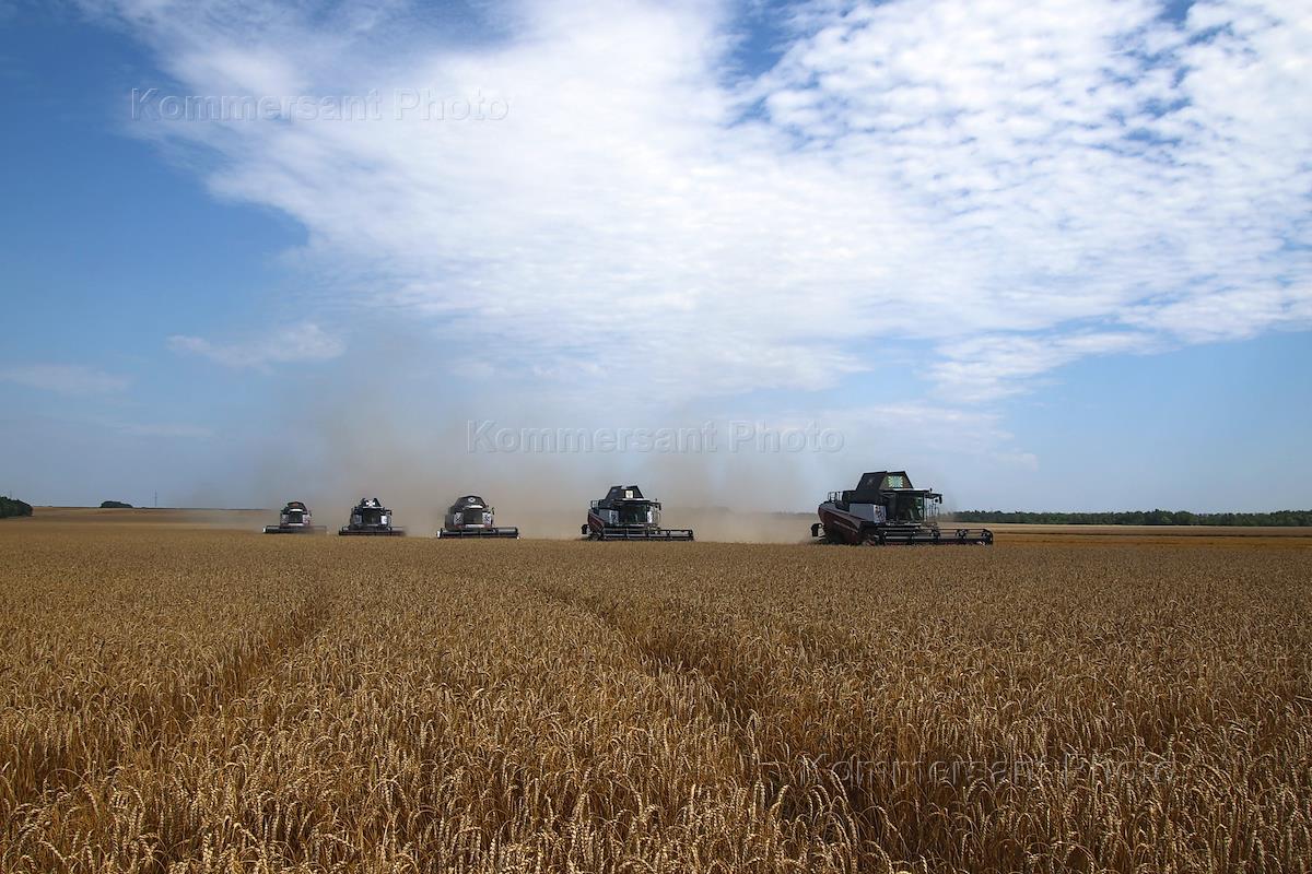 Уборка зерновых в Ростовской области. Жанровая фотография. Комбайны "ACROS" производства ОАО Ростсельмаш на полях крестьянско-фермерского хозяйства (КФХ) "Деметра" в Неклиновском районе.