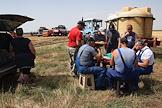 Уборка зерновых в Ростовской области. Неклиновский район. Жанровая фотография. Работники крестьянско-фермерского хозяйства (КФХ) "Деметра" во время обеденного перерыва на поле.
