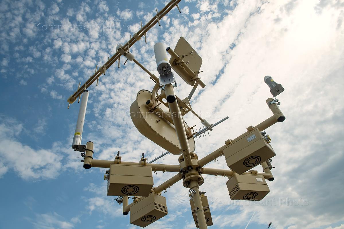 The second summit of the Russia-Africa Economic and Humanitarian Forum at the ExpoForum Convention and Exhibition Center (CEC). Genre photography. Communication antenna on the square near the center building.