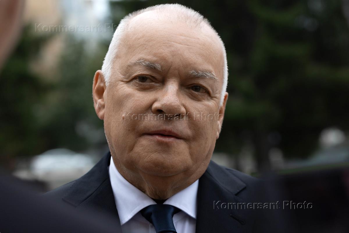 Церемония прощания с военным корреспондентом "РИА Новости" Ростиславом Журавлевым, погибшим в зоне проведения специальной военной операции (СВО), в Доме офицеров Центрального военного округа (ЦВО) в Екатеринбурге. Телеведущий, генеральный директор информагентства "Россия сегодня" Дмитрий Киселев во время церемонии.