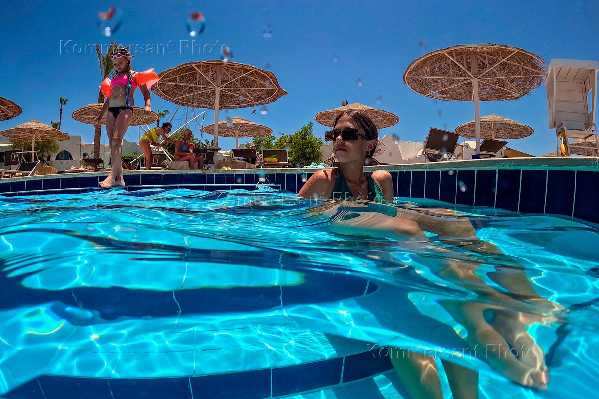Жанровая фотография. Отдых в Шарм-аль-Шейхе. Дети во время купания в бассейне отеля.