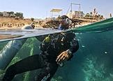 Жанровая фотография. Отдых в Шарм-аль-Шейхе. Туристы во время занятий дайвингом в море.