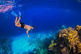 Жанровая фотография. Отдых в Шарм-аль-Шейхе. Туристка во время подводного плавания в море.