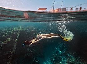 Жанровая фотография. Отдых в Шарм-аль-Шейхе. Туристка во время подводного плавания в море.