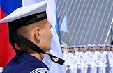 Церемония открытия Музея военно-морской славы на территории туристско-рекреационного кластера "Остров фортов". Военнослужащие Военно-морского флота во время церемонии в Кронштадте.