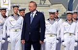 Церемония открытия Музея военно-морской славы на территории туристско-рекреационного кластера "Остров фортов" в Кронштадте. Губернатор Санкт-Петербурга Адександр Беглов (в центре) на церемонии.