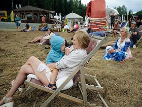 XIII Международный экокультурный фестиваль "ВОТЭТНО!" на территории горнолыжного комплекса Шерегеш Кемеровской области. Жанровая фотография. Зрители на фестивале.
