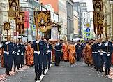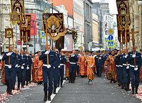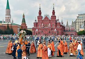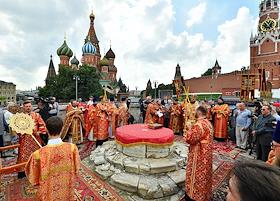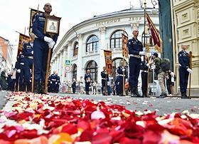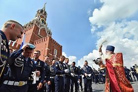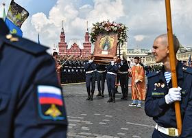 Праздничные мероприятия, посвященные 93-й годовщине создания Воздушно-десантных войск (ВДВ) России, на Красной площади. День ВДВ России отмечают 2 августа в день памяти пророка Илии, небесного покровителя Воздушно-десантных войск. Участники Крестного хода из храма Пророка Божия Илии в Китай-городе до Лобного места на Красной площади.
