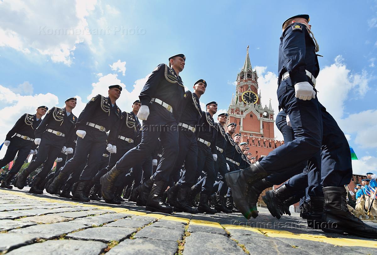 Праздничные мероприятия, посвященные 93-й годовщине создания Воздушно-десантных войск (ВДВ) России, на Красной площади. День ВДВ России отмечают 2 августа в день памяти пророка Илии, небесного покровителя Воздушно-десантных войск. Участники мероприятий.