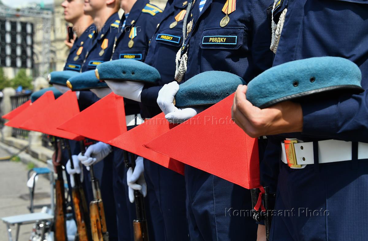 Праздничные мероприятия, посвященные 93-й годовщине создания Воздушно-десантных войск (ВДВ) России, на Красной площади. День ВДВ России отмечают 2 августа в день памяти пророка Илии, небесного покровителя Воздушно-десантных войск. Участники мероприятий.