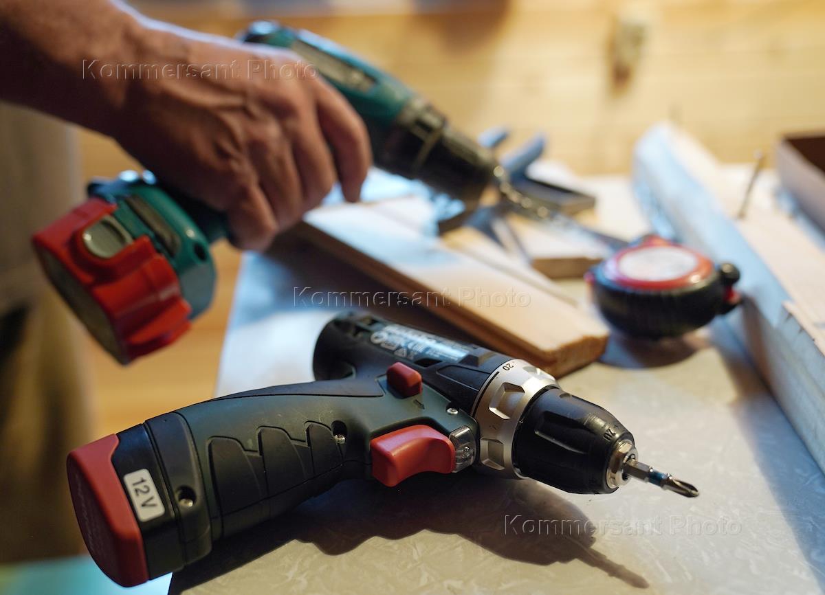 Жанровая фотография. Шуруповерт в руке мужчины.