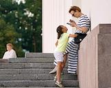 Жанровая фотография. Девочка и женщина с мобильным телефоном на лестнице.