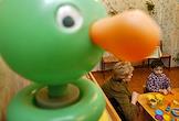 Детский дом. Ребенок с воспитателем в игровой комнате.