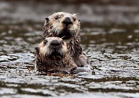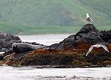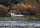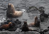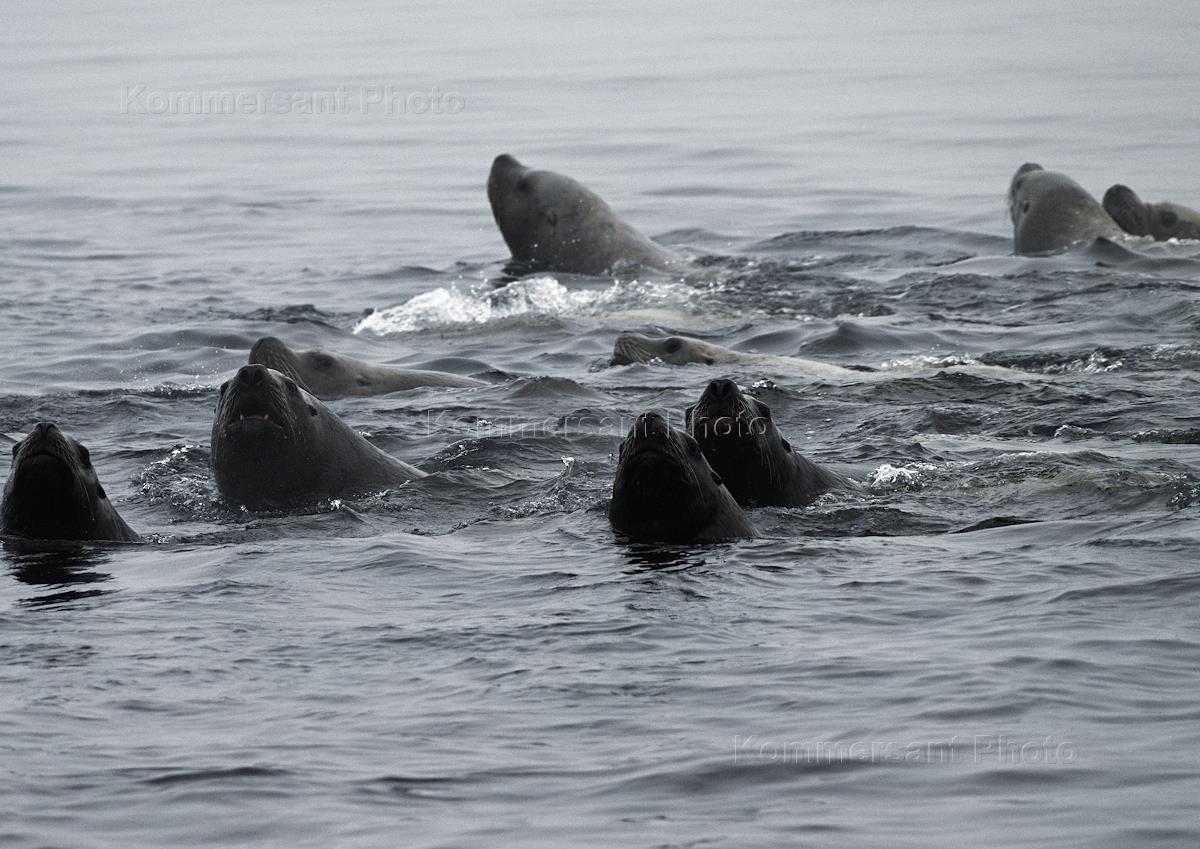 Виды Курильских островов. Жанровая фотография. Каланы в море у острова Уруп.