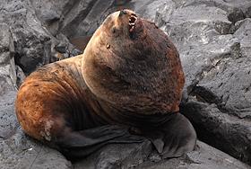 Виды Курильских островов. Лежбище сивучей на острове Брат-Чирпоев. Жанровая фотография. Сивуч самец.