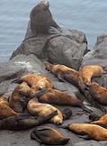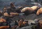 Виды Курильских островов. Лежбище сивучей на острове Брат-Чирпоев. Жанровая фотография.