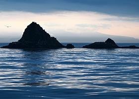 Виды Курильских островов. Жанровая фотография. Скалы у острова Уруп.