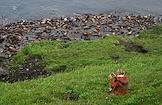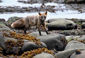Виды Курильских островов. Жанровая фотография. Лис в бухте Токотан острова Уруп.