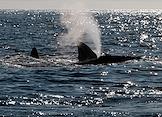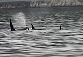 Виды Курильских островов. Жанровая фотография. Косатки в море у берега острова Уруп.